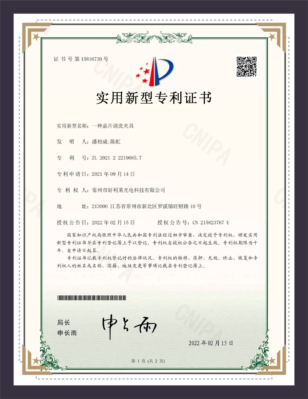 Chứng chỉ bằng sáng chế mô hình tiện ích
